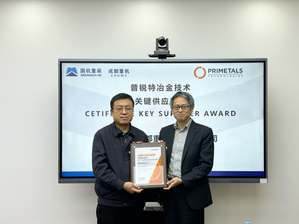 成都重機榮獲普銳特冶金技術 “關鍵供應商”獎